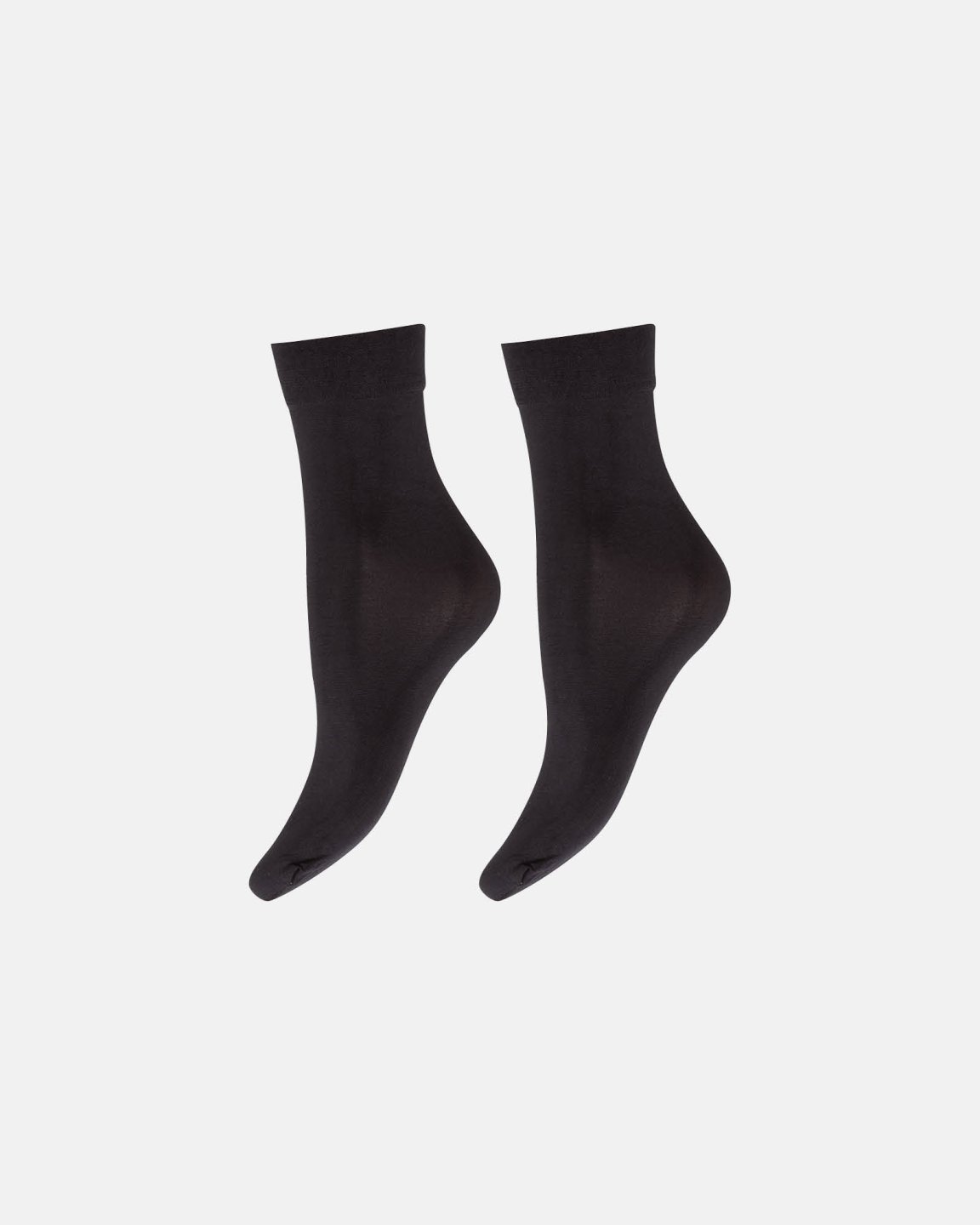 Feminine ankelstrømper med en topelastik som både er behagelige og elegante. Modellen er i 60 denier og i farven sort så den passer til næsten enhver lejlighed.