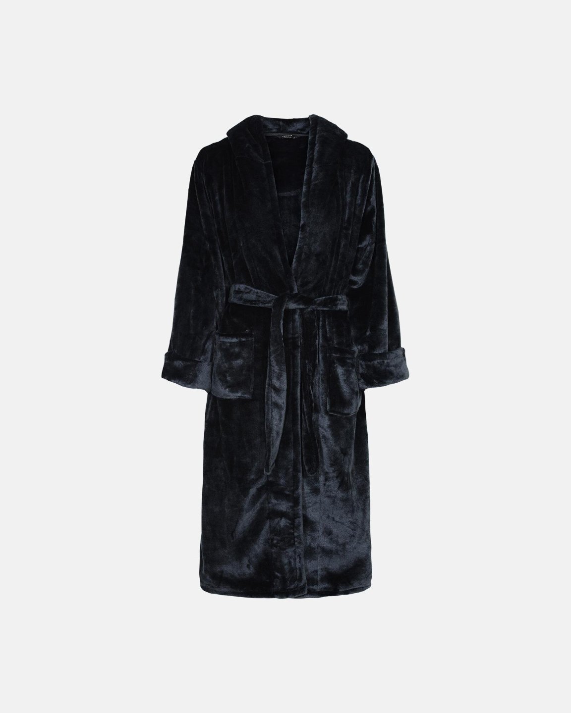 Lang badekåbe med hætte | 100% polyester | Sort - Decoy