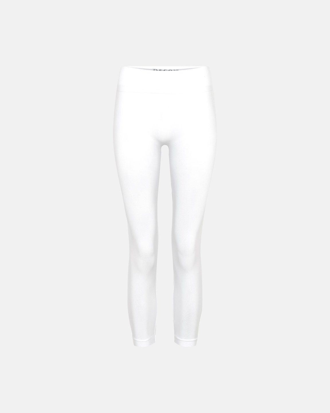 Smarte og behagelige capri leggings fra Decoy i et ensfarvet hvidt design. Disse capri er seamless (sømløs) som gør dem ekstra behagelige at bære uden trælse gener. Veloplagte til under kjoler, nederdele eller som overtræksbukser.