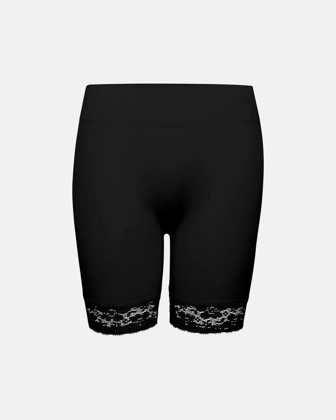 Smarte og behagelige shorts fra Decoy i et ensfarvet sort design med flotte blonder. Disse shorts er seamless (sømløs) som gør dem ekstra behagelige at bære uden trælse gener. Veloplagte til under kjoler, nederdele eller som overtræksbukser.
