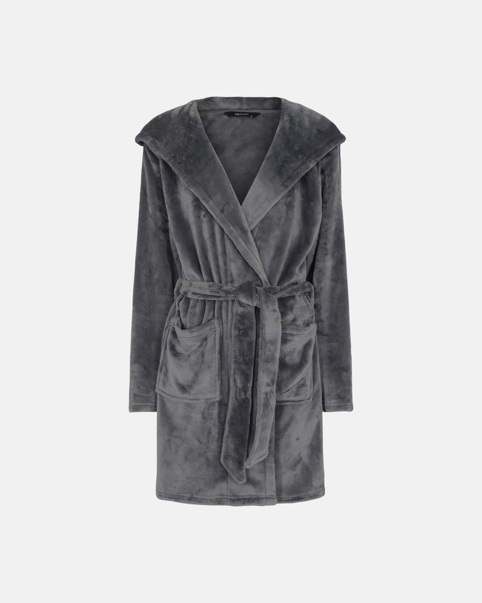 Kort badekåbe med hætte | 100% polyester | Grå - M - Decoy Morgenkåbe med hætte og lommer på fronten. Længde - kort, slutter midt på låret. Mærke: Decoy Kategori: 213 GTIN: 5701480696237 Forhandlere Lagerstatus Pris Intimo.dk in stock DKK 400,00 Besøg