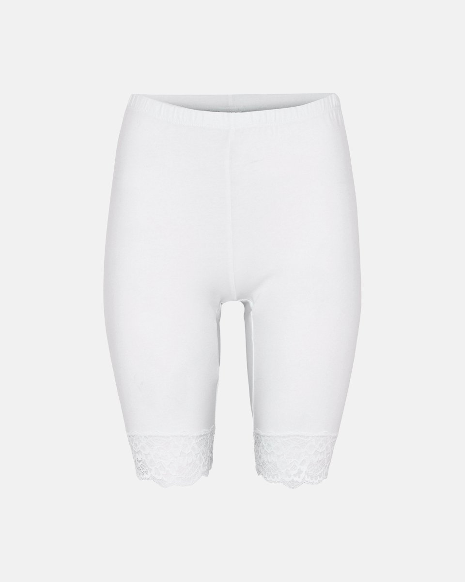 Indershorts med blondekant produceret i økologisk bomuld. Perfekte under kjolen eller nederdelen en varm sommerdag. Skåner lår, og man føler sig ikke afklædt. Længde til ca. midt på låret.