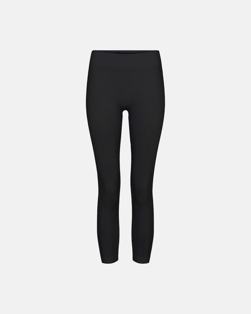Smarte og behagelige capri leggings fra Decoy i et ensfarvet sort design. Disse capri er seamless (sømløs) som gør dem ekstra behagelige at bære uden trælse gener. Veloplagte til under kjoler, nederdele eller som overtræksbukser.