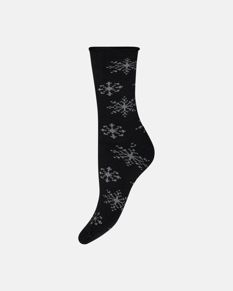 Ankelstrømper 'x-mas' | Bomuld | Sort m. snefnug - 37-41 - Decoy