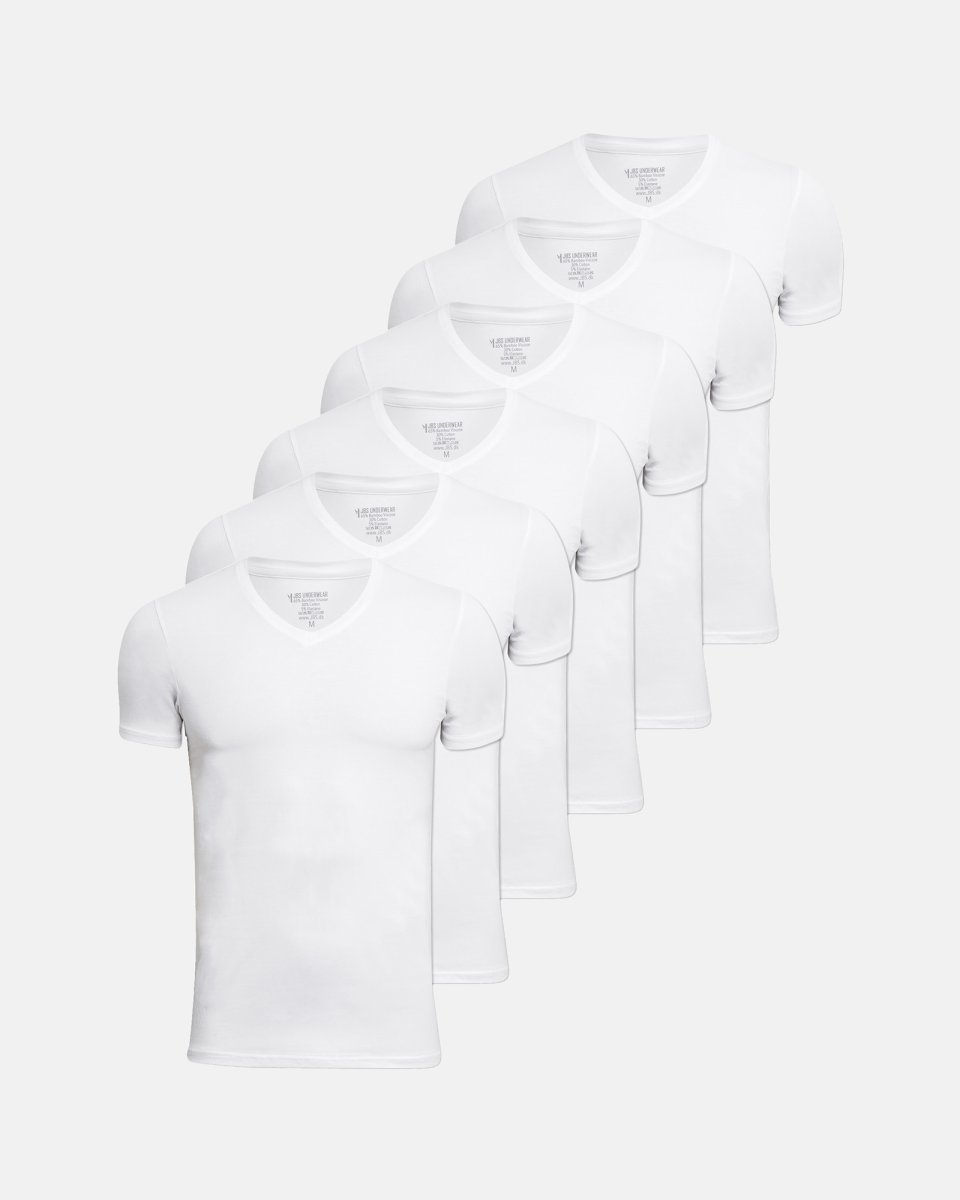 Undertrøje "v-neck" 6-pak | Bambusviskose | Hvid - M - JBS