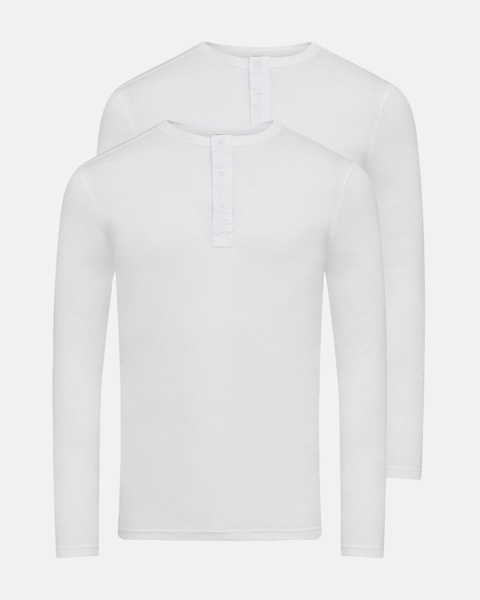 Langærmet t-shirt "grandad" 2-pak | 100% økologisk bomuld | Hvid - S - JBS