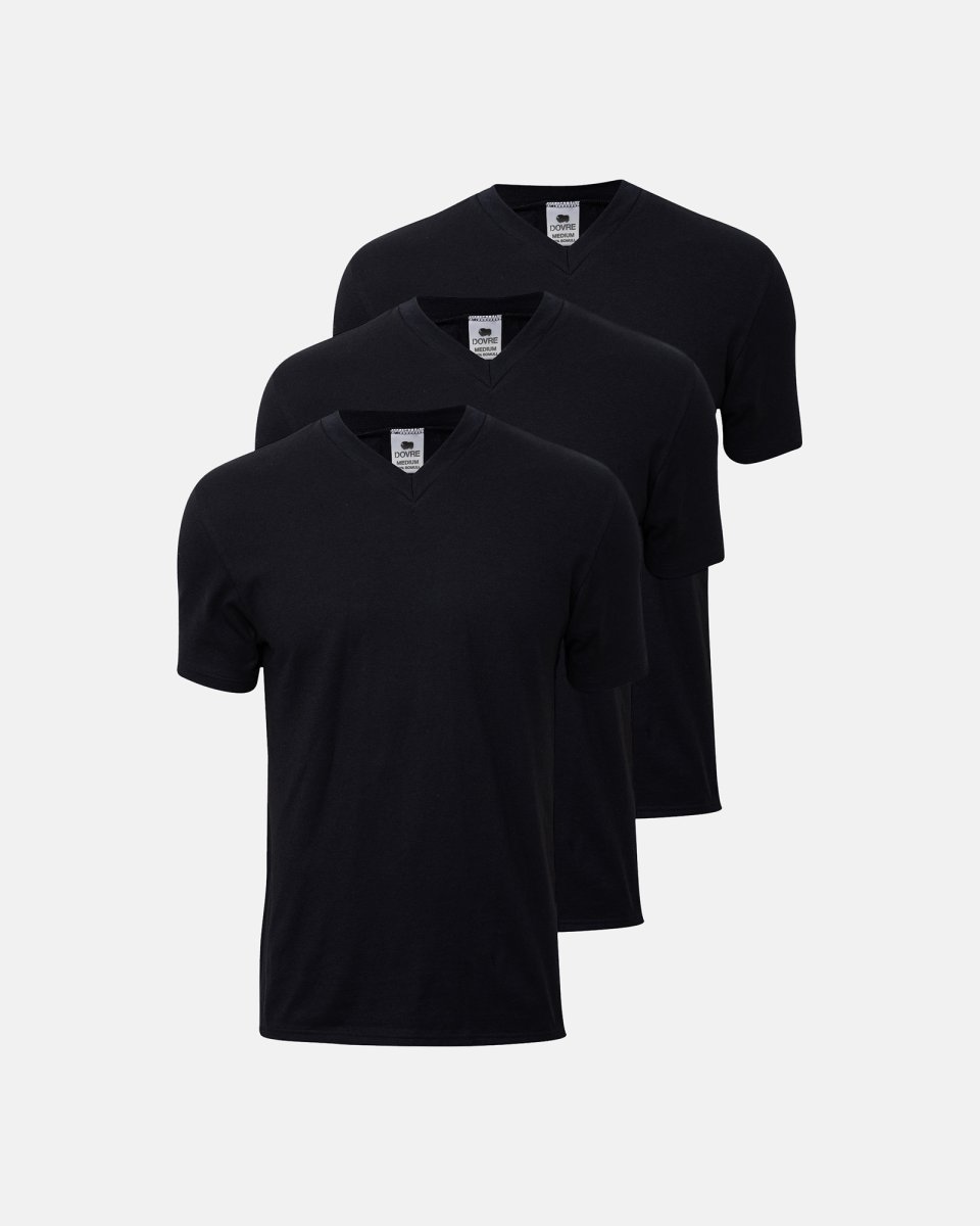 T-shirt "v-neck" 3-pak | 100% økologisk bomuld | Sort - 2XL - Dovre