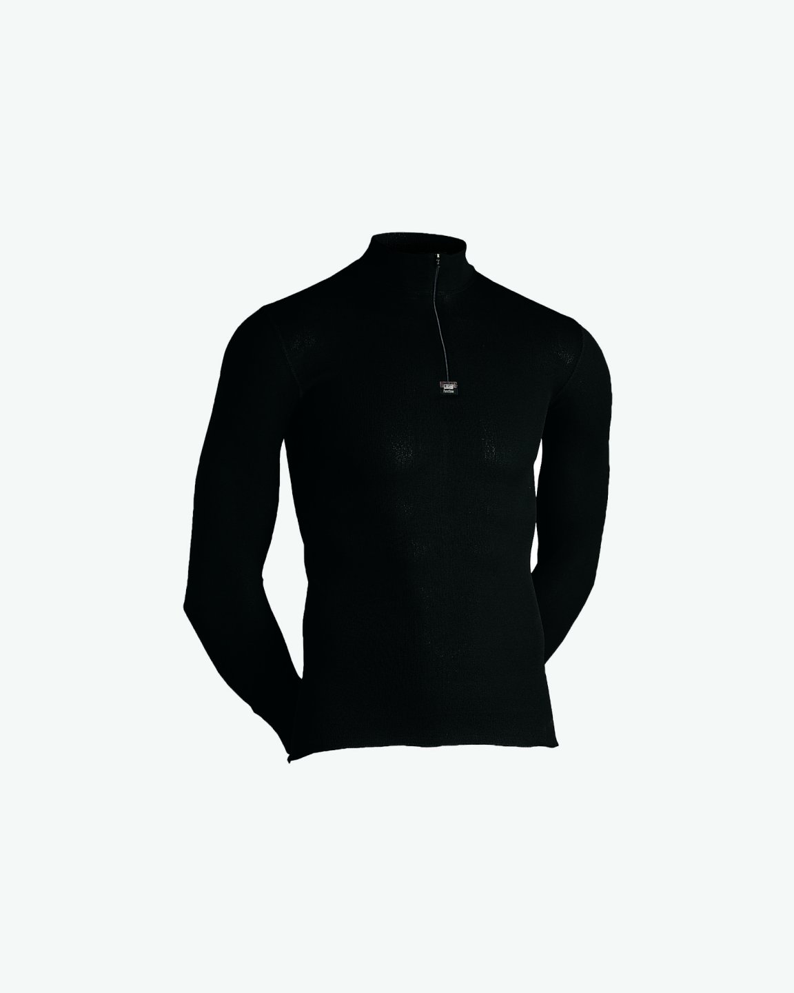 Langærmet trøje med høj krave og lynlås som stopper ved brystet. Trøjen har en tætsiddende pasform og er i farven sort, og er fremstillet i polypropylen.