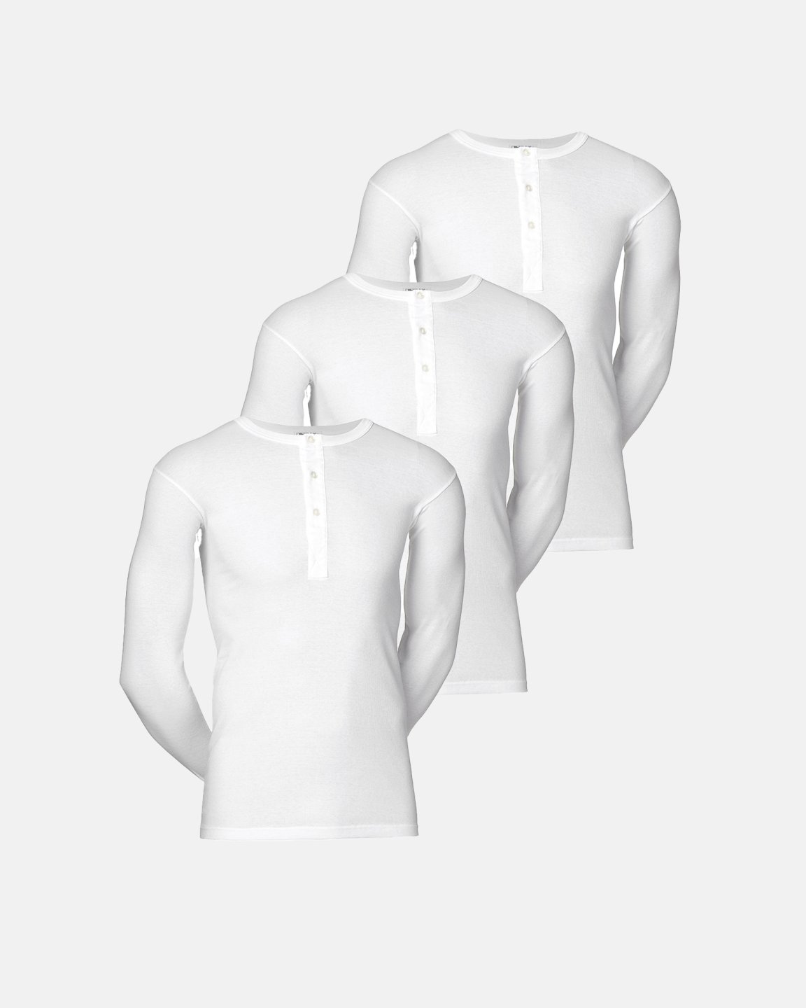 Langærmet t-shirt "grandad" 3-pak | 100% bomuld | Hvid - JBS