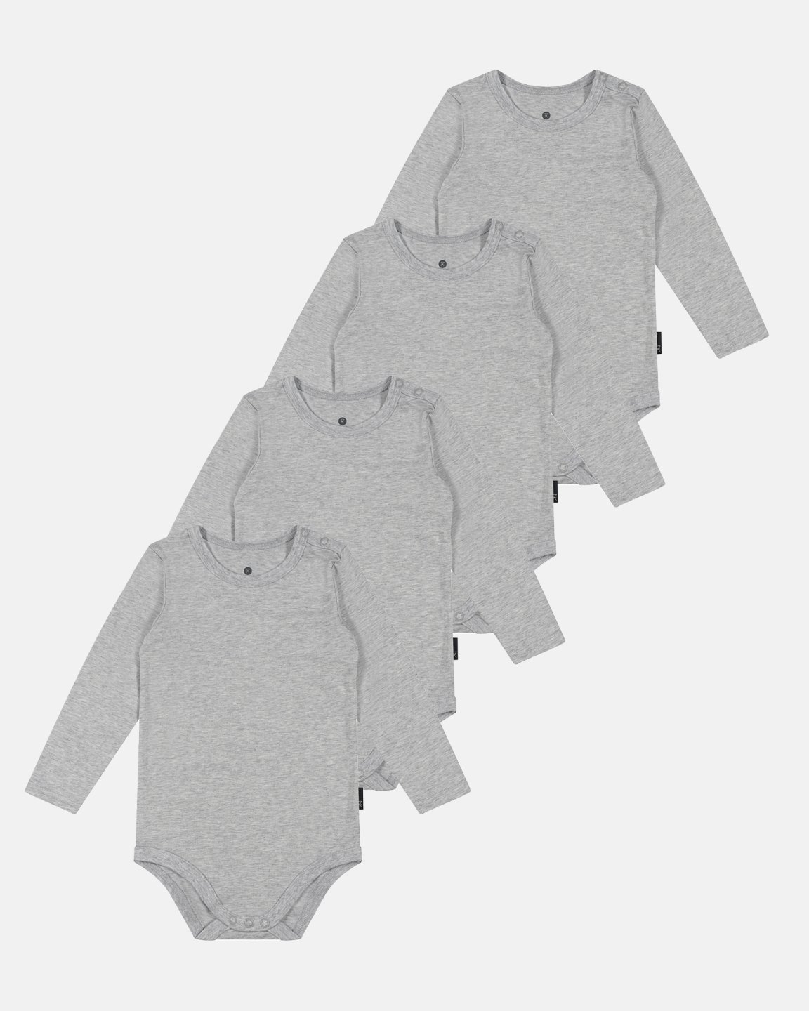 Langærmet body | 4-pak | Bambusviskose | Lysegrå - JBS of Denmark Kids