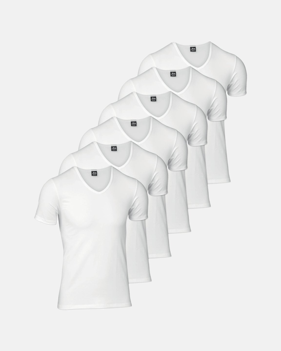 T-shirt "v-neck" 6-pak | Økologisk bomuld | Hvid - JBS