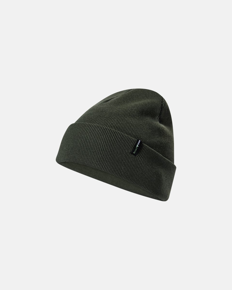 Robust og funktionel — ProActive-hue i bambusviskose, designet til professionel brug. Mørkegrøn ribstrikket hue med opfoldet kant og diskret sort vævet etiket. Materiale: 70% viskose (bambus), 30% bomuld; blød, åndbar og temperaturregulerende mod huden. Ribkonstruktionen sikrer tæt pasform og varme uden at være klodset. Holder facon og pasform selv efter gentagne vaske. Praktisk til både arbejde og fritid. Udviklet på baggrund af over 70 års erfaring i JBS Textile Group.