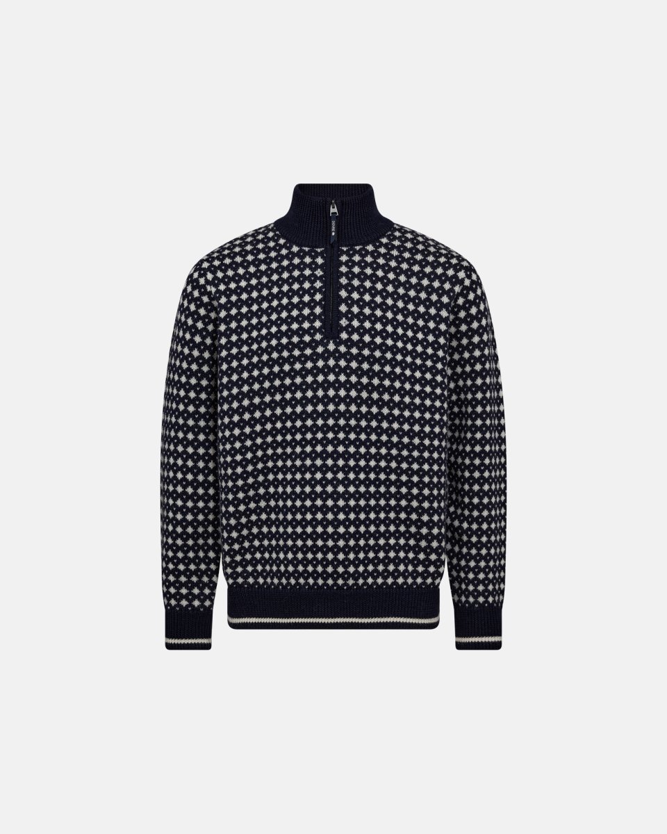 Pullover "half zip"| 100% uld | Navy/beige - S - Dovre