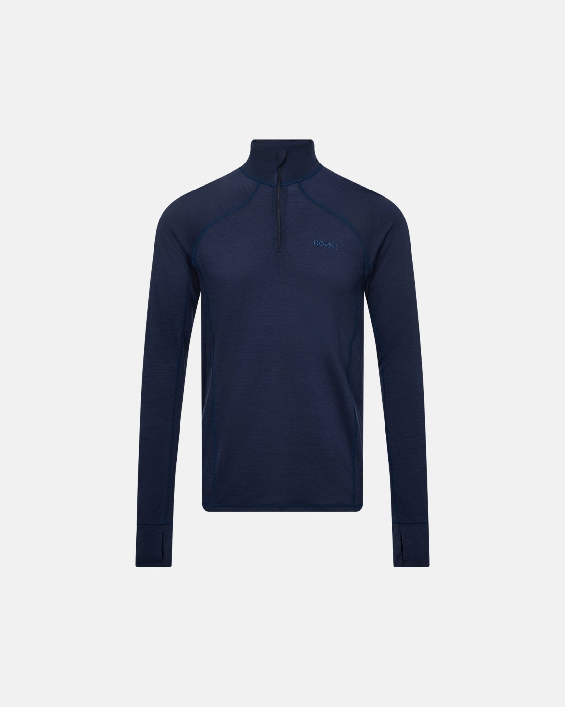 Langærmet t-shirt "half zip" | 100% merino uld | Navy - Dovre