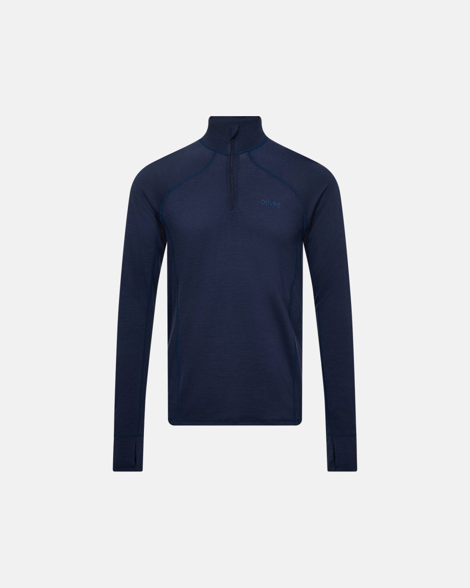 Langærmet t-shirt "half zip" | 100% merino uld | Navy - 2XL - Dovre