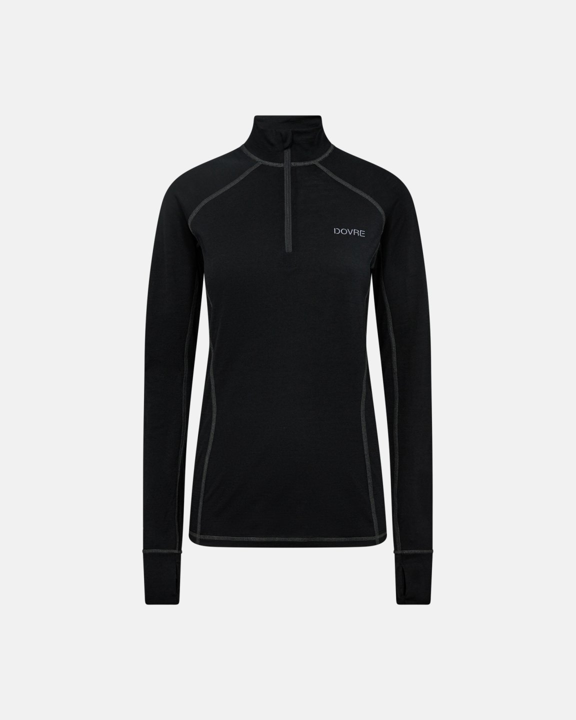 Langærmet t-shirt "half zip" | 100% merino uld | Sort - Dovre Women