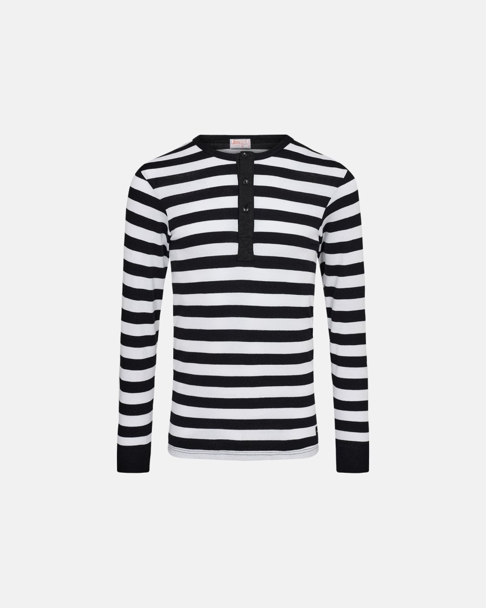 JBS og Mads Nørgaard har indgået et succesfuldt samarbejde, der forener JBS' ekspertise i komfortabelt undertøj med Mads Nørgaards ikoniske stil. Kollektionen bygger på Nørgaards signaturstriber og minimalistiske design, samtidig med at den holder fast i JBS' fokus på høj kvalitet og håndværk. Inspireret af tidløs tradition fortæller Original Cotton rib-serien en historie om håndværk, der går tilbage til 1940'erne. Med sit sømløse design for ekstra komfort, tilbyder denne GOTS-certificerede kollektion både arv og kvalitet til den moderne bruger. Farverne på denne grandad er sorte og hvide.