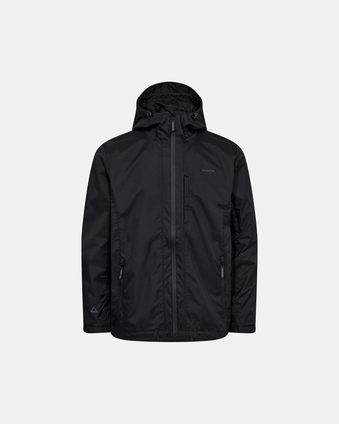 ProActive holder, hvad den lover: robust, enkel og funktionel jakke til professionelle brugere. Sort farve og 100% polyamid giver et vandafvisende, let og hurtigtørrende materialelag, der bevarer facon og pasform efter gentagne vaske. Hætte med justerbar snøre, frontlynlås med stormklap og to forlommer med lynlås sikrer praktisk beskyttelse og sikker opbevaring. Lange ærmer, lille logo på brystet og trekantet detalje på venstre ærme understreger det sporty og professionelle udtryk. Udviklet af ProActive under JBS Textile Group – funktion, holdbarhed og 70+ års erfaring samlet i én jakke.