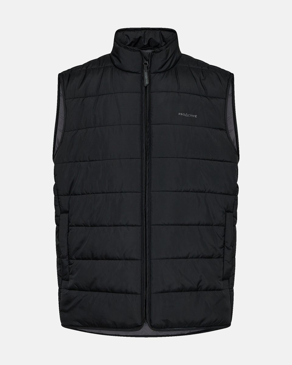 Robust og praktisk, designet til professionelle der kræver funktion uden unødvendig pynt. Sort, quiltet vest i 100% polyester med høj hals og lynlås foran, polstrede paneler giver varme uden at begrænse bevægelse. Ærmeløs konstruktion gør den ideel som mellemlag over arbejdstøj, let at kombinere og at bevæge sig i. Diskret PROACTIVE-mærke på brystet, holder facon og pasform vask efter vask. Materialet er slidstærkt, hurtigtørrende og nemt at vedligeholde, perfekt til hårdt brug og skiftende vejr.