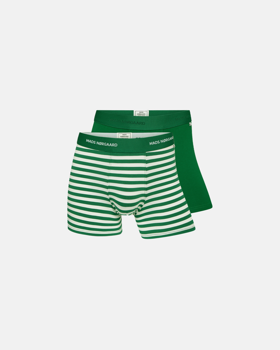 JBS und Mads Nørgaard haben eine bahnbrechende Zusammenarbeit eingegangen, die nicht nur JBS' Expertise in komfortabler Unterwäsche mit Mads Nørgaards ikonischem Stil kombiniert, sondern auch ein starkes Engagement für Nachhaltigkeit hervorhebt. Die Kollektion konzentriert sich auf Nørgaards charakteristische Streifen und minimalistisches Design und integriert gleichzeitig JBS' Hingabe zu hoher Qualität und nachhaltigem Handwerk. Das Design dieser Unterhosen umfasst einen zeitlosen Look, der sowohl JBS' als auch Mads Nørgaards charakteristische Streifen ehrt, während es gleichzeitig das Umweltbewusstsein fördert. Hergestellt aus biologischem Bambusviskose, bieten diese Unterhosen nicht nur herrliche Weichheit und hervorragenden Komfort, sondern sind auch eine umweltfreundliche Wahl. Bambus ist eine nachhaltige Ressource, da er schnell wächst, keine Pestizide oder künstliche Bewässerung benötigt und große Mengen an CO2 absorbiert. Diese Unterhosen sind OCS-zertifiziert und in einem geschlossenen Prozess hergestellt, der den Wasserverbrauch effektiv minimiert und damit bis zu 180 Liter Wasser pro Paar im Vergleich zu traditionellen Herstellungsmethoden spart. Mit diesem Set, das zwei Paar Unterhosen enthält, eines in einfarbigem Grün und das andere gestreift in Weiß und Grün, unterstützen Sie nachhaltige Mode, während Sie Mads Nørgaards Signaturstreifen tragen.