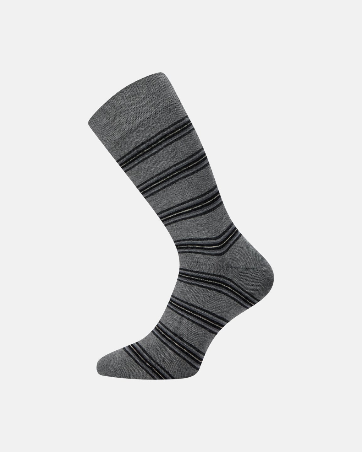 Egtveds erfaring siden 1931 kommer til udtryk i disse herrestrømper med professionel kvalitet og diskret, selvsikker elegance. 80% bomuld giver blød, åndbar komfort hele dagen, mens 20% polyamid sikrer holdbarhed og formstabilitet. Den grå farve med sorte og hvide vandrette striber i varierende tykkelse giver et sobert og modernt udtryk, velegnet til både hverdag og mere formelle lejligheder. Tæt strik og formgivning betyder pæn pasform uden at glide, og materialet føles blødt mod huden.