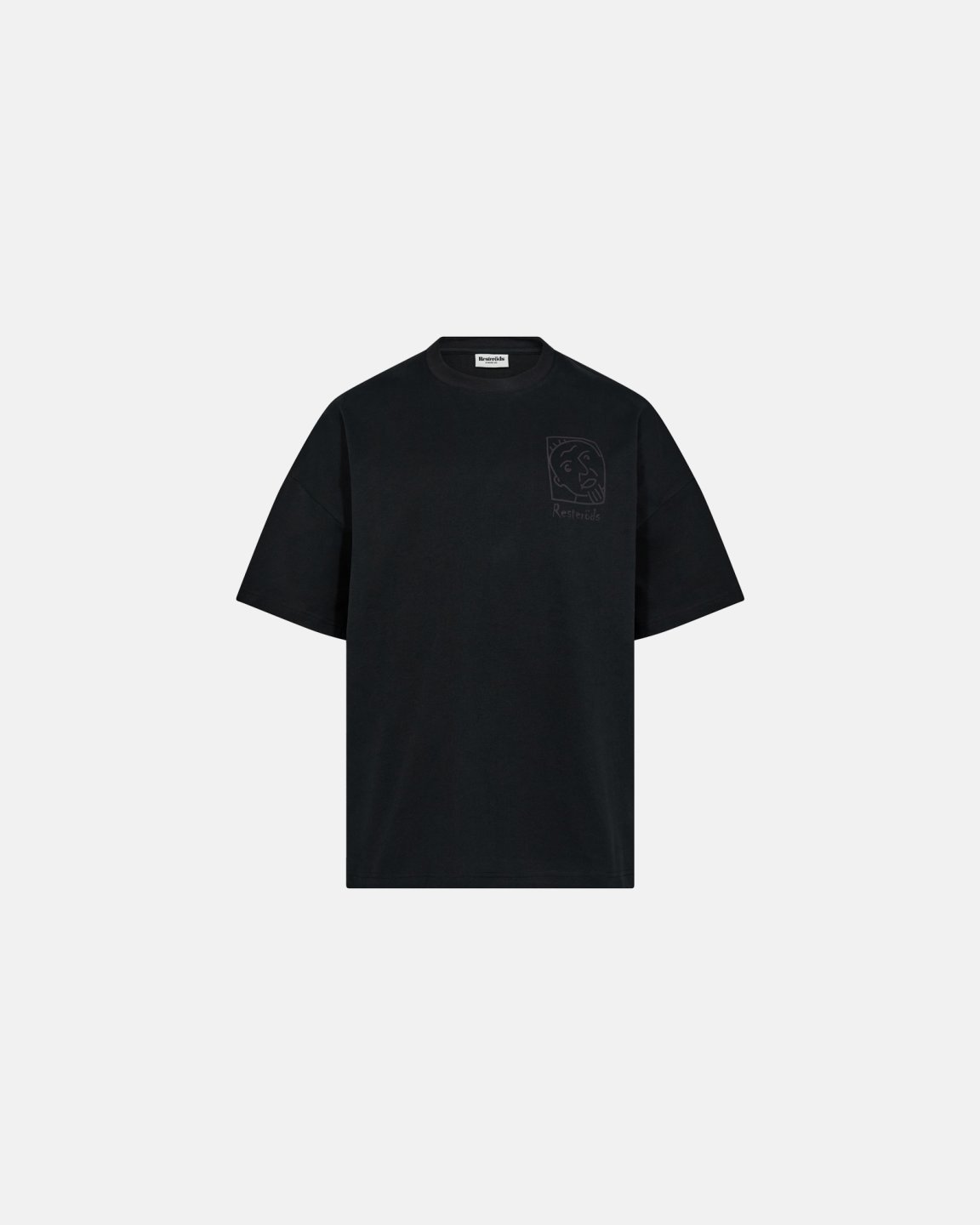 Enkelhed møder funktion i denne sorte T-shirt i 100% bomuld skåret til en normal pasform med rund hals og korte ærmer for ubesværet komfort. Stoffet er blødt, åndbart og holder formen vask efter vask. Et diskret tryk i brysthøjde viser en stiliseret ansigtstegning indrammet i firkant med Resteröds-logo. Sorten giver et rent, minimalistisk udtryk og passer til enhver lejlighed.