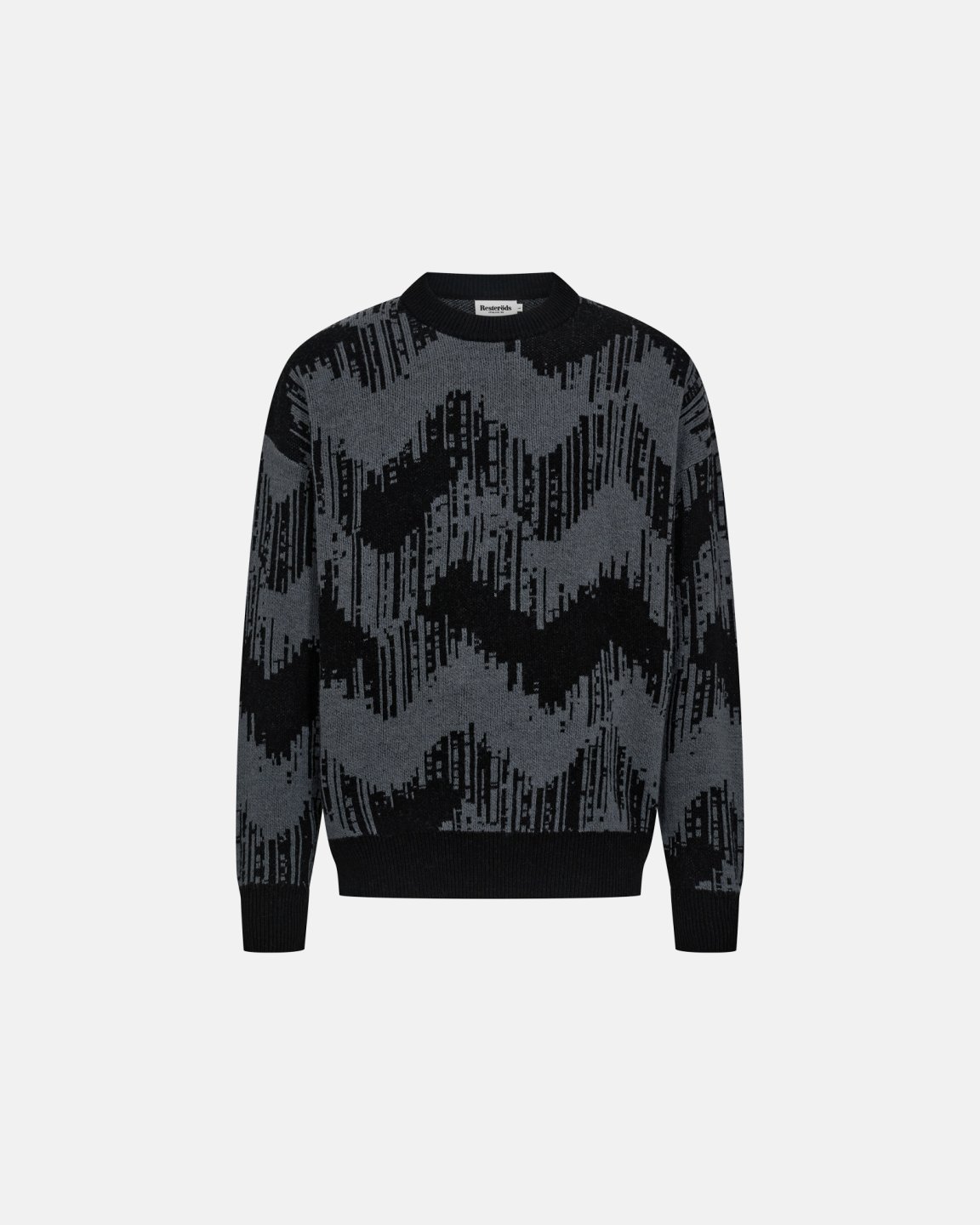 Mick-striktrøjen taler for sig selv med et grafisk zigzag-mønster i sort og grå. 80% uld og 20% polyamid giver blød komfort og naturlig varme. Den tætte strik og høje krave holder kulden ude uden at virke klodset. Krave, ærmekanter og kant forneden er strikket i dyb sort for et rent udtryk. Pasformen er afslappet, men fastholder sin form. Designet afspejler vores tradition siden 1935 uden unødvendige detaljer.