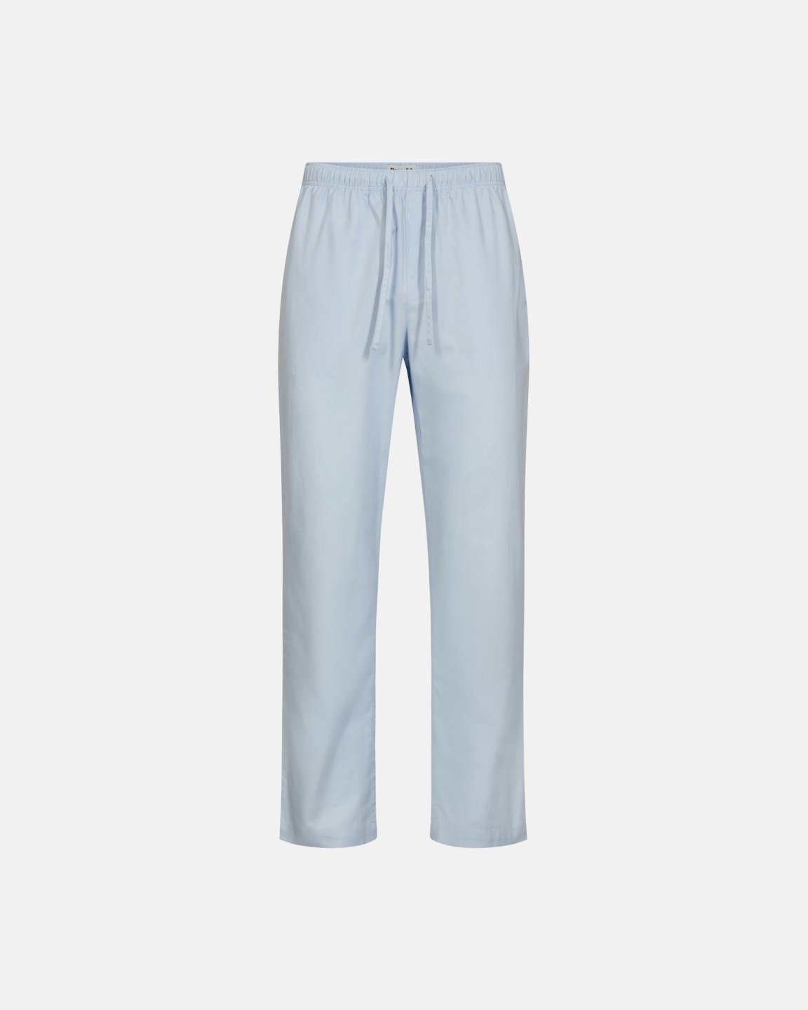 Resteröds siden 1935: enkel komfort og ægte materialer. Pyjamasbukser 'Sandman' i lysblå til herre, 100% bomuld. Blødt, let fald fra taljen med elastik og justerbar snor; ingen synlige lommer for et rent udtryk. Materialet føles blødt mod huden og er velegnet til afslapning og loungewear. Afdæmpet blå farve der holder sig klassisk.