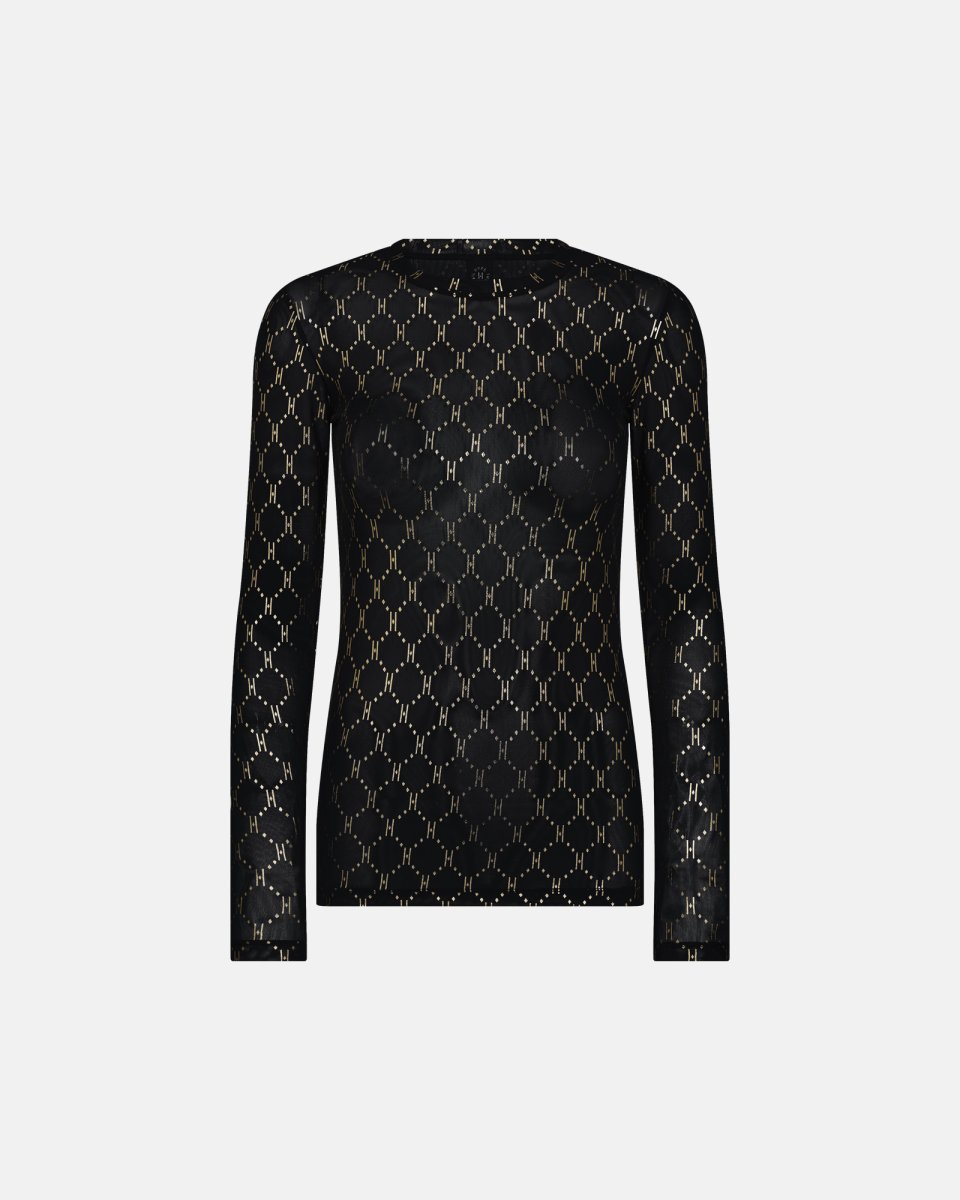 Bluse "Mesh" | Polyester | Sort m. guld - XS - Hype the Detail
