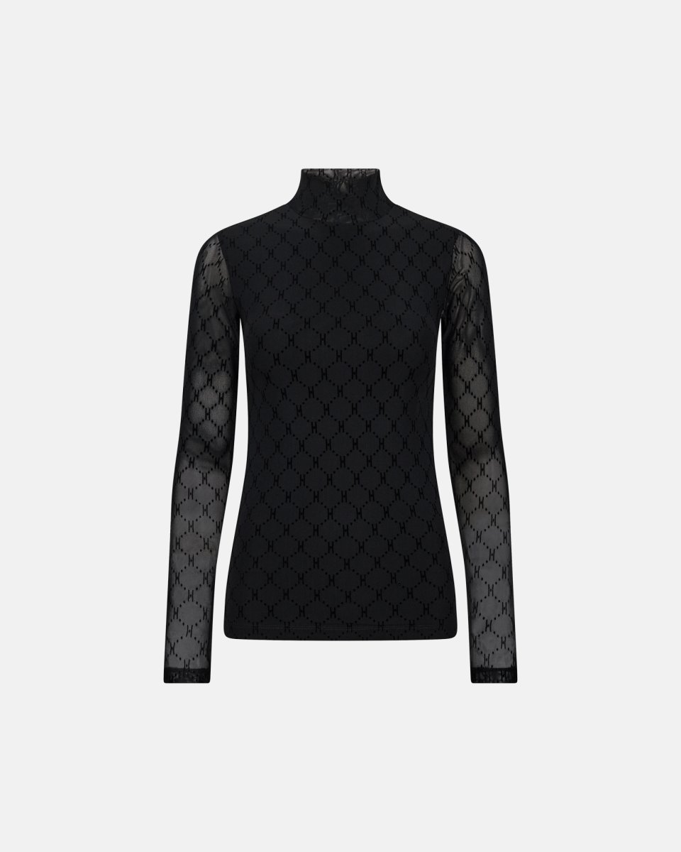 Giv din stil et sprødt twist med mesh high neck-blusen fra Hype the Detail. Den sorte, let transparente polyamidbluse med prik- og H-mønster leger med kontraster og lader din hud kigge subtilt frem. Den høje hals og de lange ærmer giver en cool, sofistikeret silhuet, mens stretch-fibrene sikrer, at du kan bevæge dig frit og komfortabelt hele dagen. Mønstret pifter ethvert outfit op fra jeans og sneakers til pencil skirt og stilletter, og blusen fungerer både til caféhygge, kontorlook eller aftenfest. Kvaliteten i hver fiber hylder detaljeleg og feminine former uden at gå på kompromis med holdbarhed. Brug den som base for lag-på-lag styling eller lad den stå alene som et dristigt, nytænkende statement. Den perfekte mix af attitude, alsidighed og selvsikkerhed til den moderne kvinde.