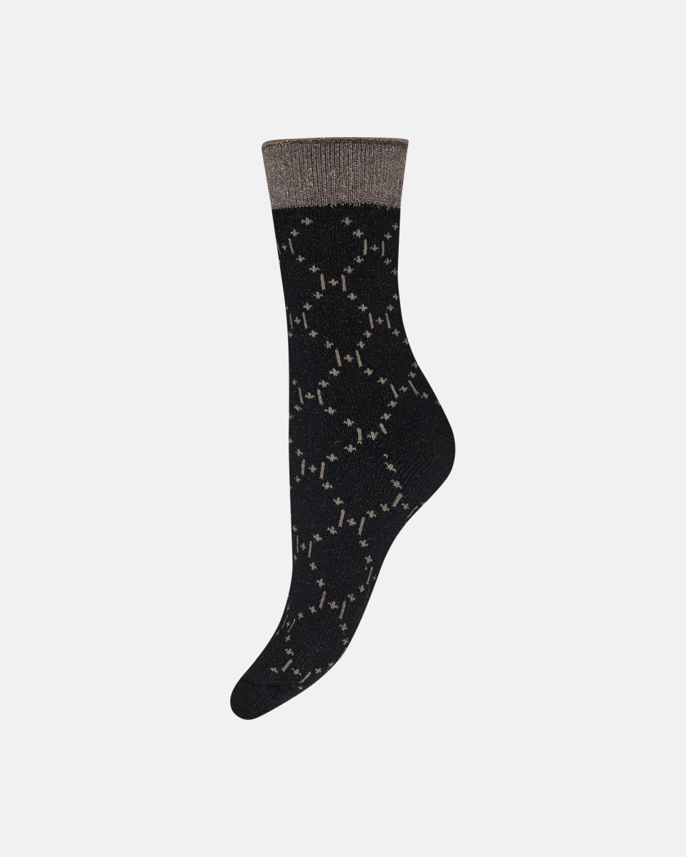 Når små detaljer sætter den store trend, er disse strømper dit musthave til både hverdag og fest. Blød merinould omfavner fødderne og holder dem dejligt varme uden at klø. Glitrende Lurex-tråde og fint diamantmønster gør selv en sort strømpe til et statement. Elastan og polyamid sikrer en perfekt pasform, der følger din bevægelse hele dagen. Style dem med både sneakers og stiletter for et energifyldt kontrastlook. Komfort og kvalitet forenes i en sok, der gør styling til en leg.