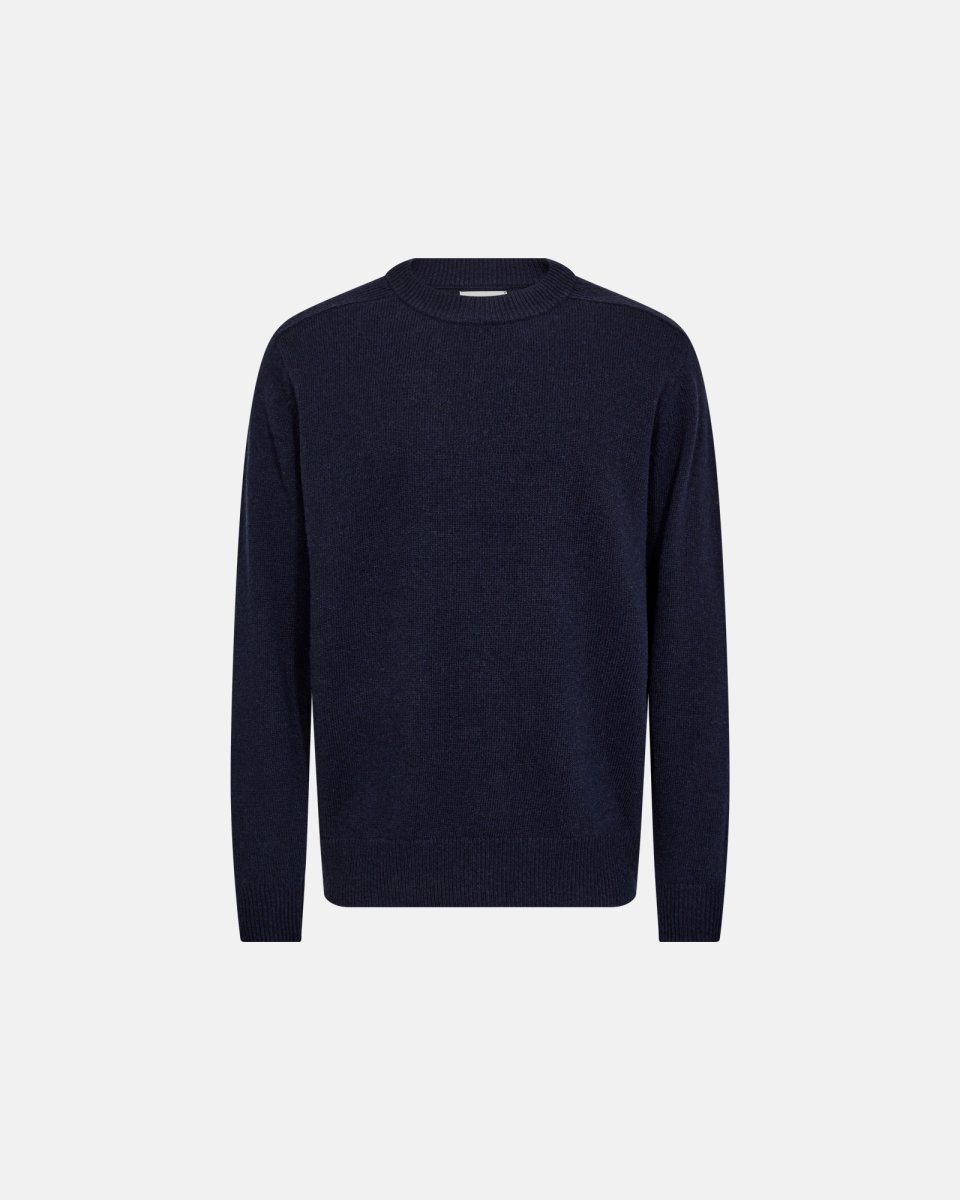Resteröds har lavet enkelt og holdbart tøj siden 1935, her i en navy strikpullover til herre i en blød uldblanding. 80% uld og 20% polyamid giver varme, naturlig isolering og god holdbarhed uden at blive for tung. Rund hals, lange ærmer og rib ved hals, manchetter og kant sikrer en klassisk pasform og diskret struktur. Farven navy gør den nem at kombinere til flere anledninger. Designet er ligetil og komforten er i fokus.