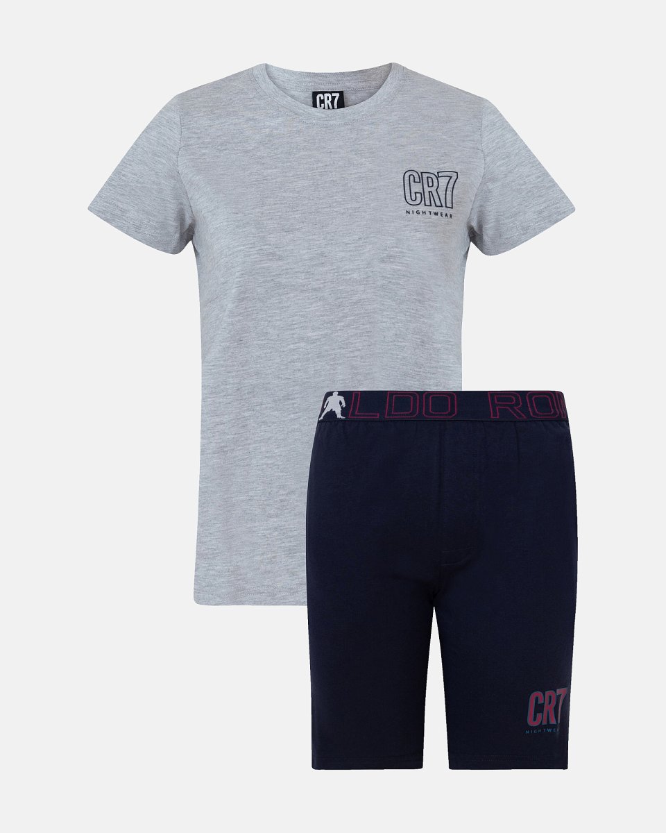 CR7 Underwear pyjamas med shorts til børn. Grå top og sorte shorts med diskret CR7 logo. Lavet i 100% bomuld for god komfort og holdbarhed. Det enkle design giver et stilrent look, og den bløde kvalitet sikrer en behagelig nattesøvn. Et godt valg til den unge fodboldfan. Sov godt – i CR7-stil.