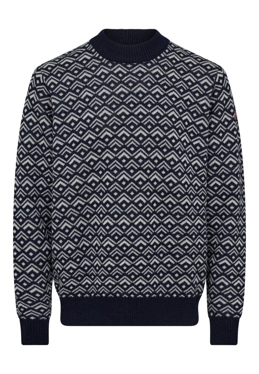 Hos Dovre forener vi norsk håndværk og naturens styrke i denne pullover i 100% uld. Den bløde uld tilpasser sig kroppen og holder dig varm på kolde dage. Det geometriske mønster skaber et klassisk look med et nordisk touch. Rund hals og ribkanter ved ærmer og bund sikrer en tæt og behagelig pasform. Uldens naturlige evne til at regulere varme og fugt gør trøjen behagelig hele dagen. Robust strik, der modstår slid og hyppig brug. Perfekt til både hverdag og udendørs eventyr.