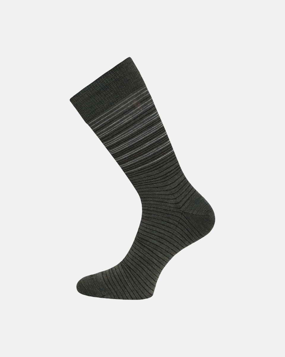 Egtved forener årtiers håndværk og præcision i disse uldstrømper til herre. Fremstillet af 75% uld og 25% polyamid for naturlig varme, god åndbarhed og øget holdbarhed. Den afdæmpede grønne farve passer til både jakkesæt og afslappet tøj. Rib ved toppen og længde til midten af læggen sikrer stabil pasform uden at glide. Struktur i strikningen giver blød fornemmelse mod huden og subtil tekstur. Ulden regulerer temperatur og transporterer fugt, så strømperne fungerer året rundt. Designet er enkelt og holdbart med fokus på pasform og slidstyrke.