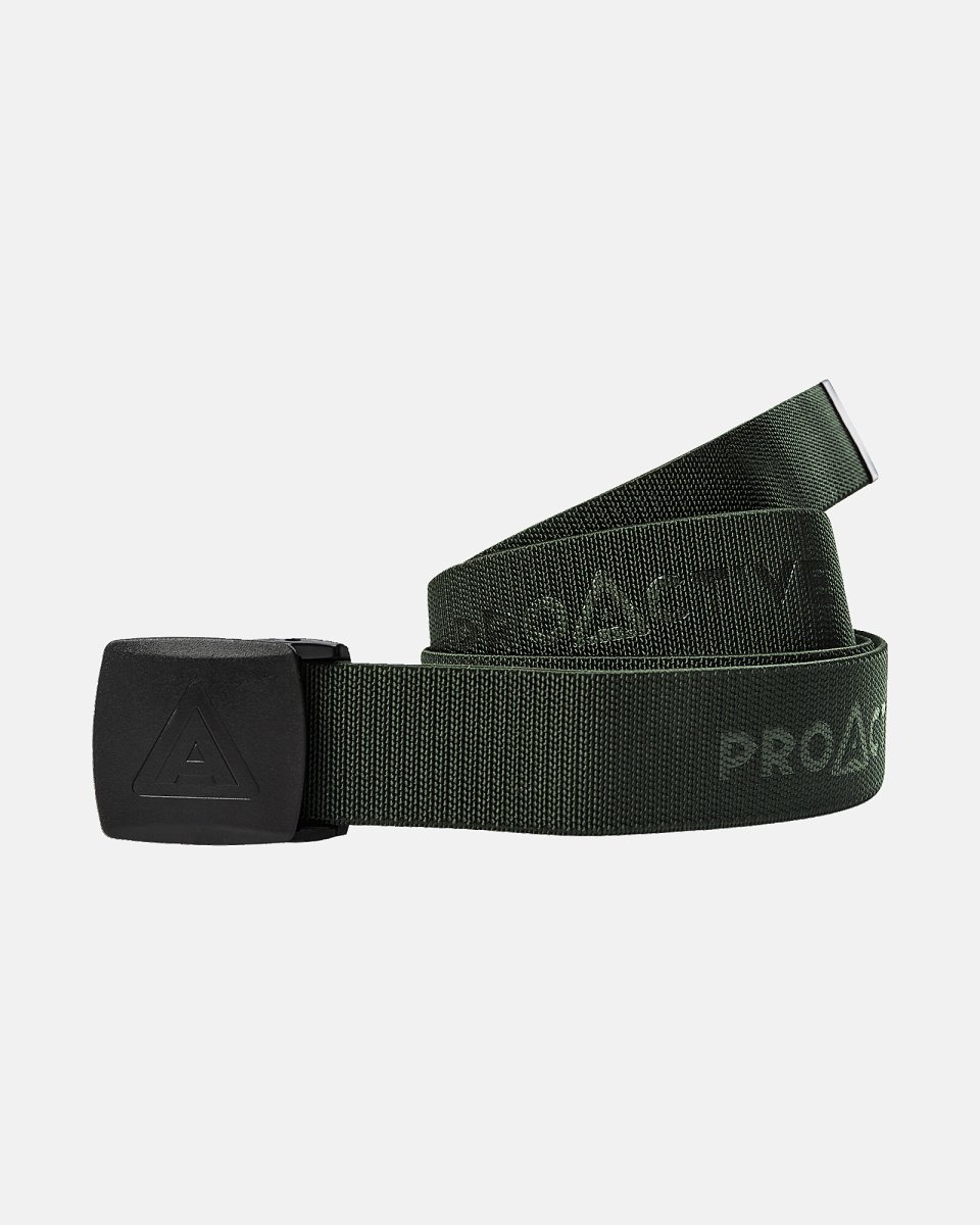 Robust og direkte: et elastisk bælte til professionelle, der kræver stabilt greb hele dagen. Dyb skovgrøn farve fremhæver arbejdstøjet uden at tage fokus fra det praktiske. Vævet mix af 85% polypropylen og 15% elastan giver let, slidstærk og fleksibel komfort, holder formen og tørrer hurtigt efter vasketure. Sort plastspænde med trekantet logo lukker sikkert og giver et rent, funktionelt udseende. Subtil PROACTIVE-tekst i matchende farve og foldet, fastgjort ende sikrer et pænt finish.