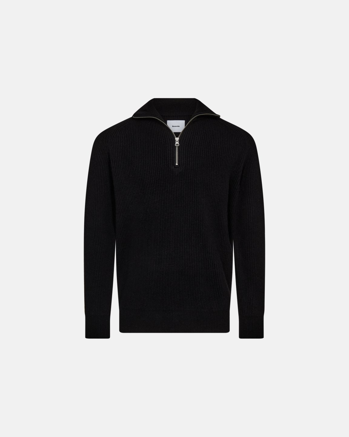 Siden 1935 har Resteröds lavet enkel, autentisk strik til mænd. Sort ribstrikket trøje med lynlås, krave og lange ærmer i en afdæmpet, klassisk silhuet. Materiale: 80% uld, 20% polyamid — varm, åndbar og formstabil. Ribstrik giver god bevægelsesfrihed og en tæt, komfortabel pasform. Lille sideetiket nederst til venstre som et diskret kendetegn. Brug den over en t-shirt eller som mellemlag under jakken.