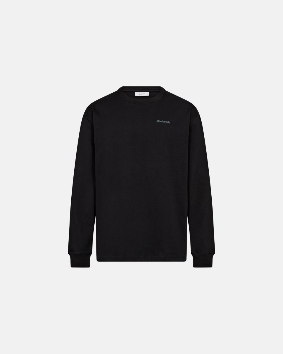 Resteröds har lavet tøj siden 1935 og holder fast i enkelhed og kvalitet. Langærmet t-shirt i 100% bomuld, sort, med rund hals og rib ved ærmerne. Blødt, tætstrikket bomuld giver en behagelig og åndbar fornemmelse hele dagen. Lille tekstlogo på venstre bryst og en enkel silhuet, der passer til det meste i garderoben. Ribkanterne sikrer tæt pasform ved håndleddene og fri bevægelse i ærmerne.