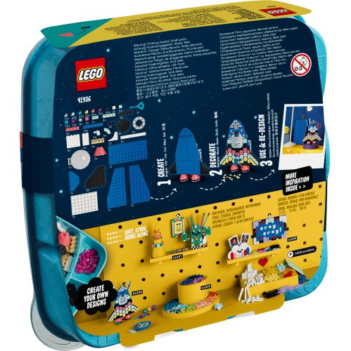 Locka rymdfantaster och pysselfans med det coola setet LEGO® DOTS Pennställ (41936)! Setet är snabbt och enkelt att bygga tack vare de medföljande instruktionerna och låter barn skapa ett eget pennställ och designa det efter humör eller inredning. Städning och sortering är en barnlek med den medföljande förvaringsbrickan. Kreativt teknikpyssel Detta mångsidiga, smarta set utvecklar barns fantasi och förmåga att uttrycka sig. Det innehåller ett högt, blått och svart, raketformat pennställ med en öppningsbar fönsterram på framsidan med plats för en bild eller en teckning och plats på baksidan för pennor eller andra föremål, plus massor av färgglada plattor för att göra raketen unik. För barn som älskar kreativa leksaker Det roliga med detta set är att barn får chansen att vara fantasifulla och dekorera sitt pennställ precis som de vill för att matcha humör eller inredning, eller att dela mönstren med vänner. Det blir en fantastisk present för vardagslek eller en perfekt belöning till ett barn som förtjänar en överraskning. Uppmuntra ett barns kreativitet med det äventyrliga setet LEGO® DOTS Pennställ (41936) och inspirera barns fantasi när de utvecklar sina designfärdigheter och gör sin egen raket. Raketformad förvaring! Barn kan utveckla sin förmåga att uttrycka sig när de dekorerar det multifunktionella pennstället, använder de medföljande mönsteridéerna eller hittar på en helt egen, ny stil. Vad finns på brickan? Detta roliga set innehåller en byggbar raket med öppningsbar fönsterram med plats för en bild eller en teckning, och förvaring på baksidan för pennor, småprylar eller vad som helst. Alla barn från 6 år med passion för rymden eller pyssel kommer att älska setet Pennställ (41936). Den anpassningsbara raketen och de färgglada plattorna blir en kreativ present till pojkar och flickor. Den användbara, dekorativa raketen är 18 cm hög och 7 cm bred, och detta spännande gör-det-själv-set är perfekt för unga designer som vill öva på sina designfärdigheter om och om igen. Ge barn tilltalande pyssel att skapa och använda med LEGO® DOTS seten. Detta inredningsset med förvaringsbricka hjälper till att uppmuntra och utveckla barns självförtroende och kreativa färdigheter genom lek. LEGO® DOTS seten utvecklar barns förmåga att uttrycka sig och stärker deras fantasi när de skapar och designar smycken eller inredningsprylar, så att en ny grupp barn får uppleva glädjen i LEGO lek. LEGO® delar uppfyller stränga branschstandarder för att säkerställa att de är hållbara, kompatibla och kan sättas ihop och dras isär lika lätt varje gång – så har det varit sedan 1958. LEGO® delar tappas, värms, krossas, vrids och analyseras för att säkerställa att de uppfyller strikta globala säkerhetsstandarder.