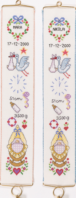 Broderet med korssting (sy med delt garn 2/6 tråd) og stikkesting (sy med delt garn 1/6 tråde) Syet på Hør 075/00 10 tråde/cm i farven Hvid, med beslag.