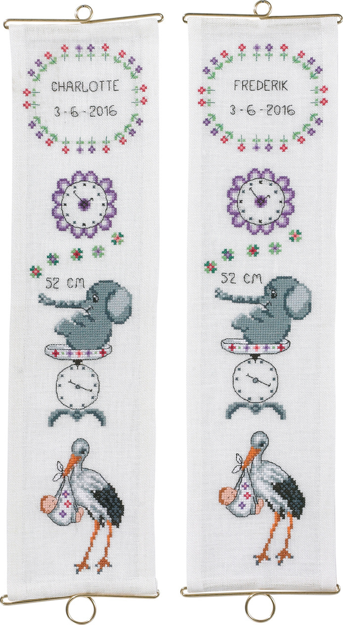 Broderi Charlotte/Frederik D+P, 12 x 46cm