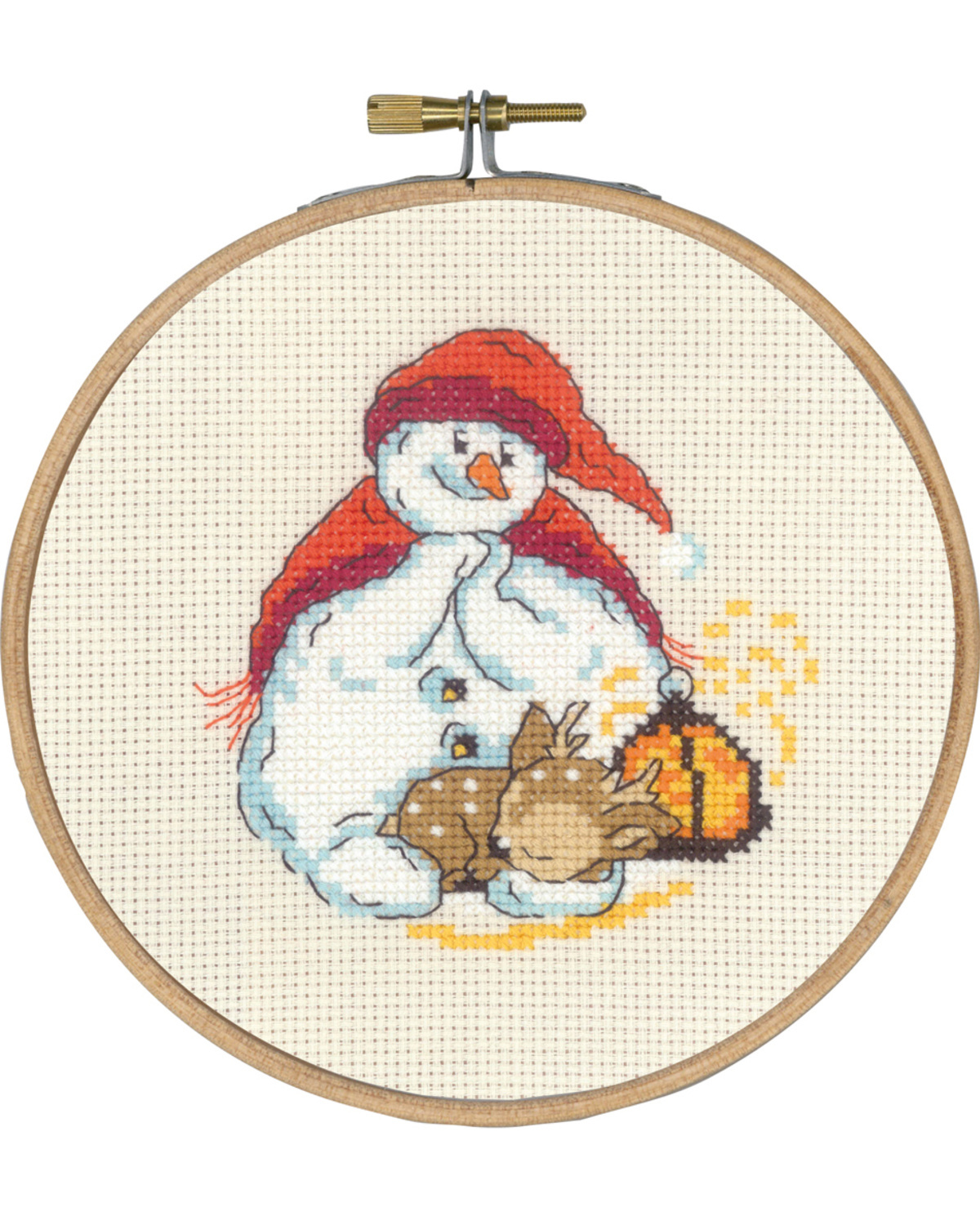 broderi juleophæng, Ø15cm, Snemand og råkid