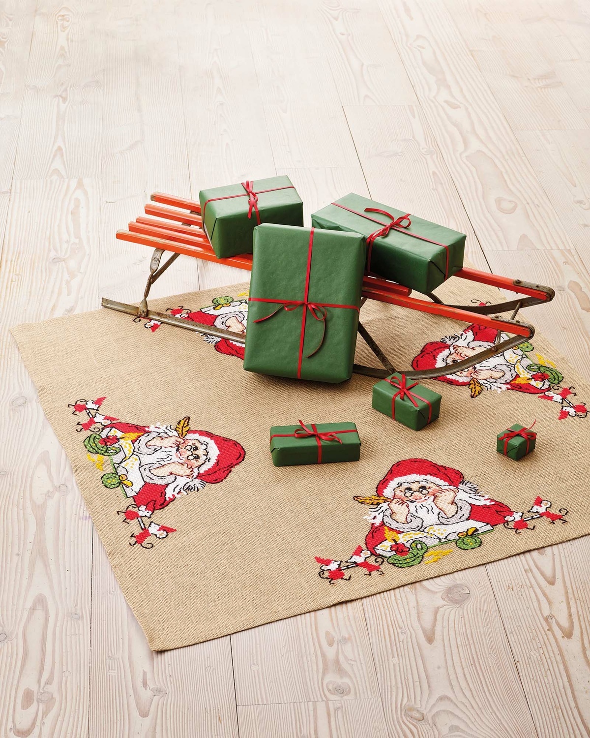 broderi Juletræstæppe, 118x118cm, Julemand & mus