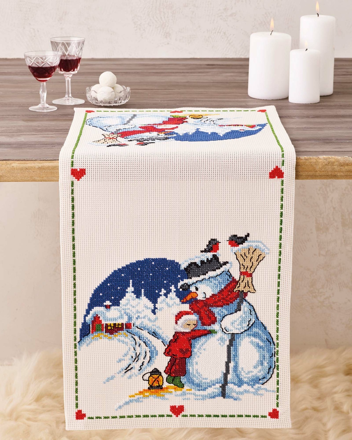 Broderet med korssting (1/1) og stikkesting (sy med 1/1). Syet på Aida 352/22 3,2 tråde/cm i ecru 13 farver DMC Perlegarn.
