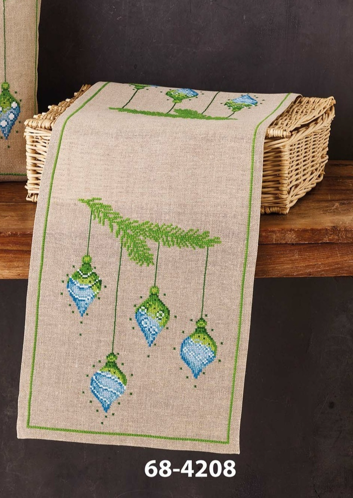 Broderet med korssting (sy med helt garn 1/1). Syet på Hørlærred 059/01 8 tråde/cm i Natur 7 farver DMC Perlegarn.