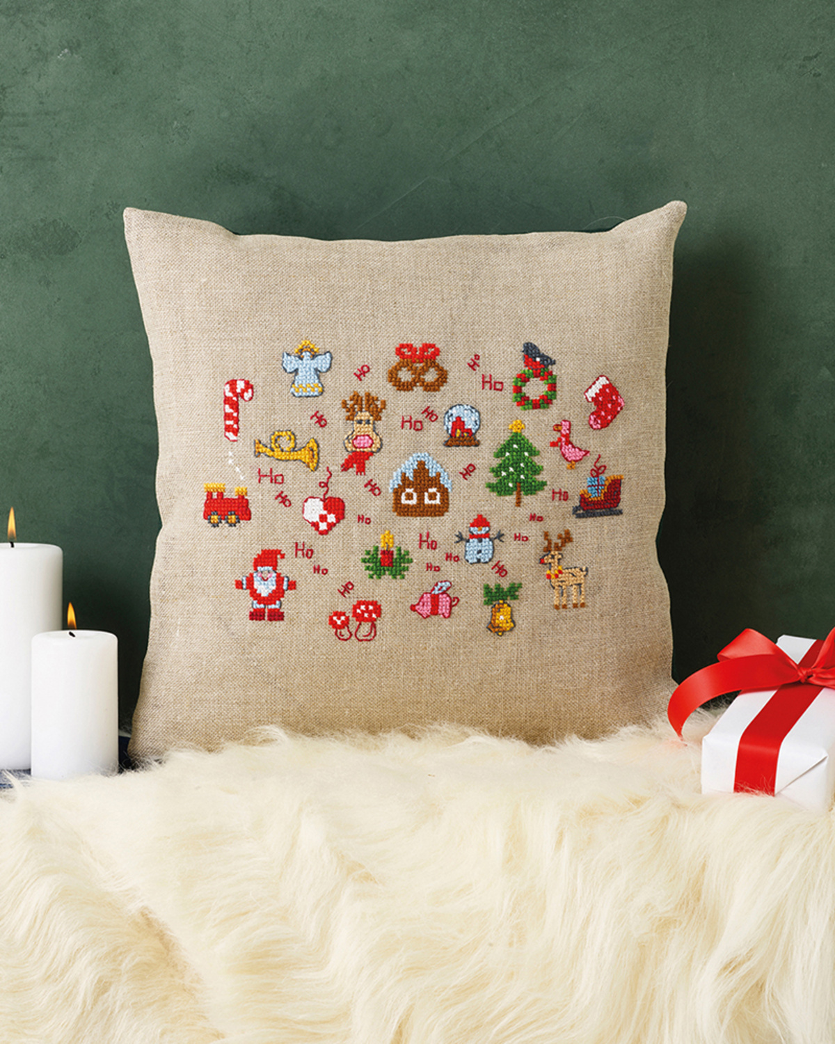 Broderi pude, 40x40cm, juleting, Ho, ho, ho