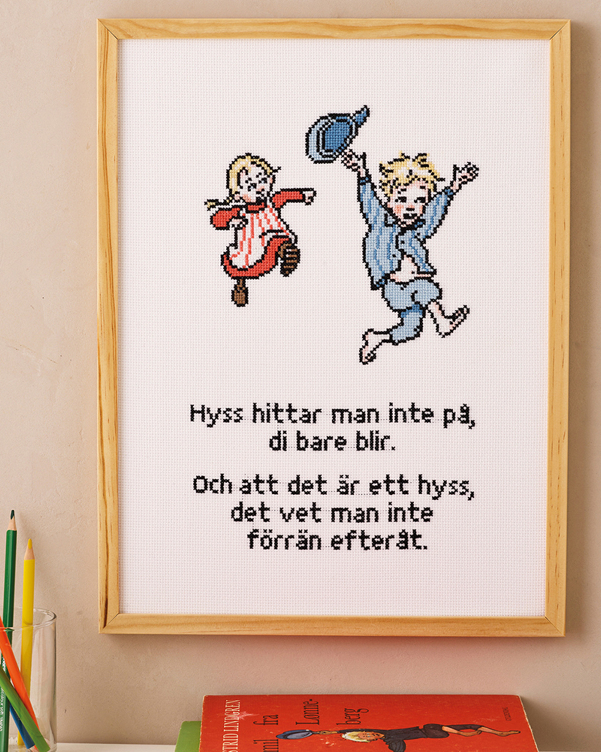 Broderi med korssting (sy med hel tråd 1/1) Sy på Aida 357/00 5,4 tråd/cm i hvid 9 farver DMC Mouliné. Ramme indgår ikke. White Aida 5,4/14" hvid Mouline.