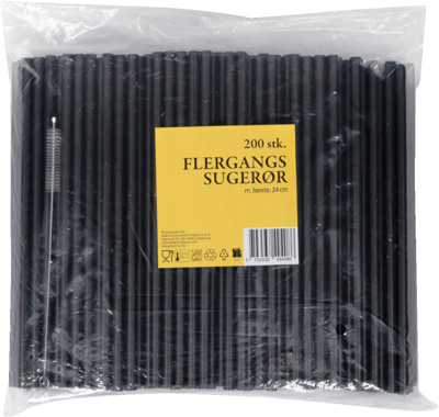 Sugerør til flergangsbrug, fremstillet i PP, som er 100% genanvendelig ved korrekt sortering, og som kan gå i opvaskemaskinen.
