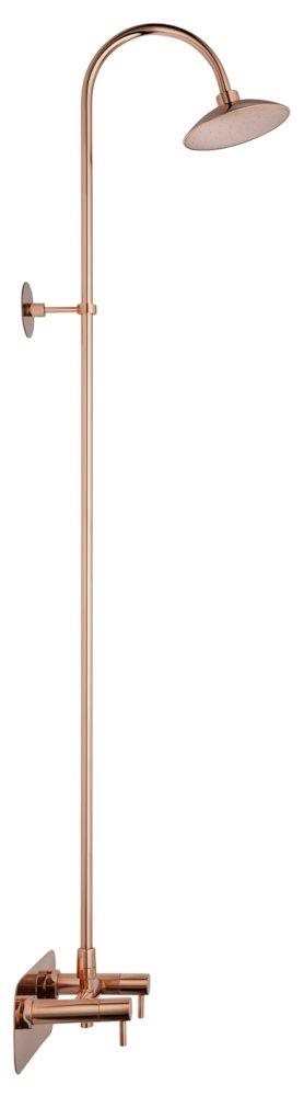Den varme kobberfinish tilfører et eksklusivt og tidløst udtryk, som patinerer smukt over tid og integrerer sig naturligt i både moderne og rustikke omgivelser. Den væghængte konstruktion gør bruseren pladsbesparende og nem at montere – ideel til sommerhuset, terrassen eller udendørs spaområder.