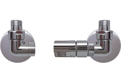 Corner Rum, ½" vinkelløbende hjørneventilsæt med rumtermostatføler, forkromet.